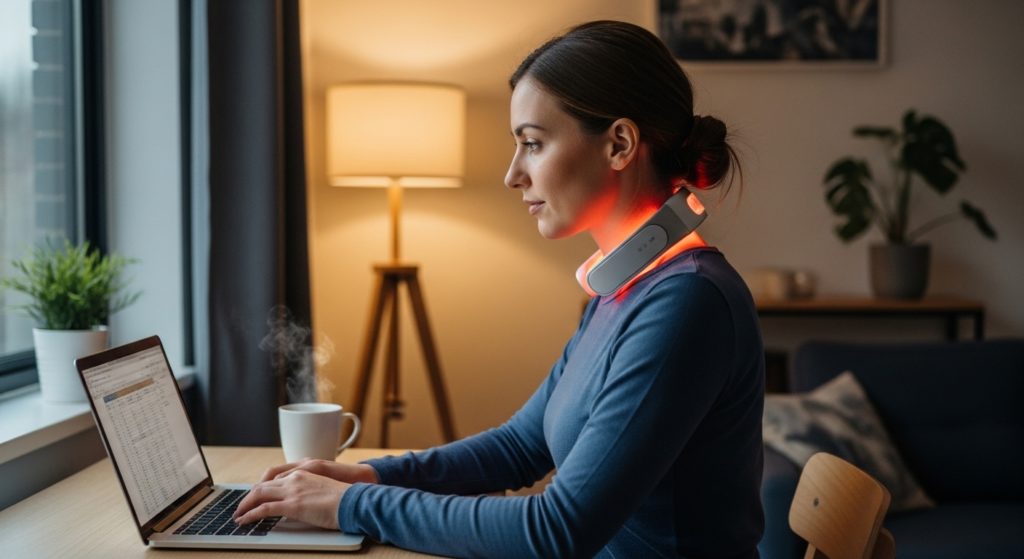 「デスクワークしながら使えるのが本当に便利。首の乾燥ジワが目立たなくなり、マフラーを外すのが怖くなくなった」— 30代女性・デザイナー